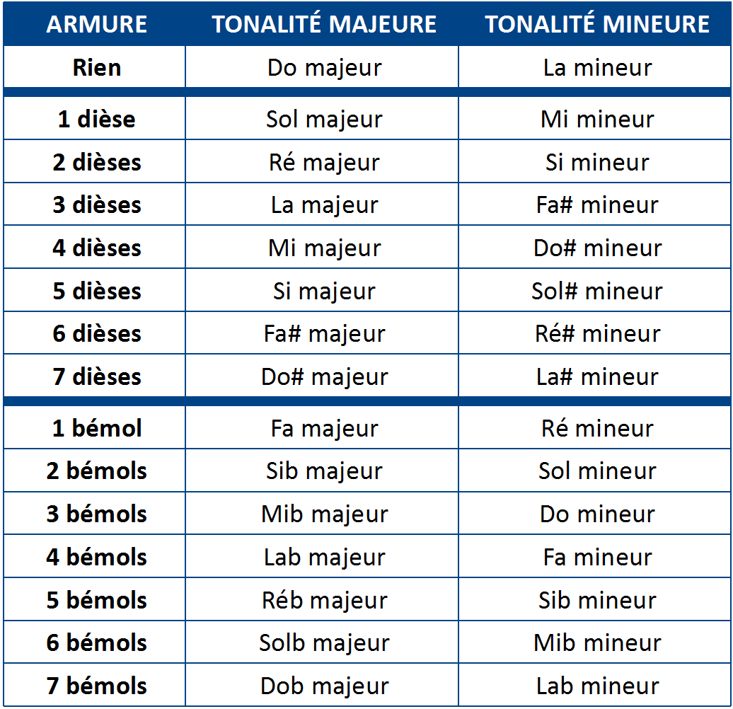 Mais pour y arriver, il faut savoir que chaque armure peut correspondre à deux tonalités :